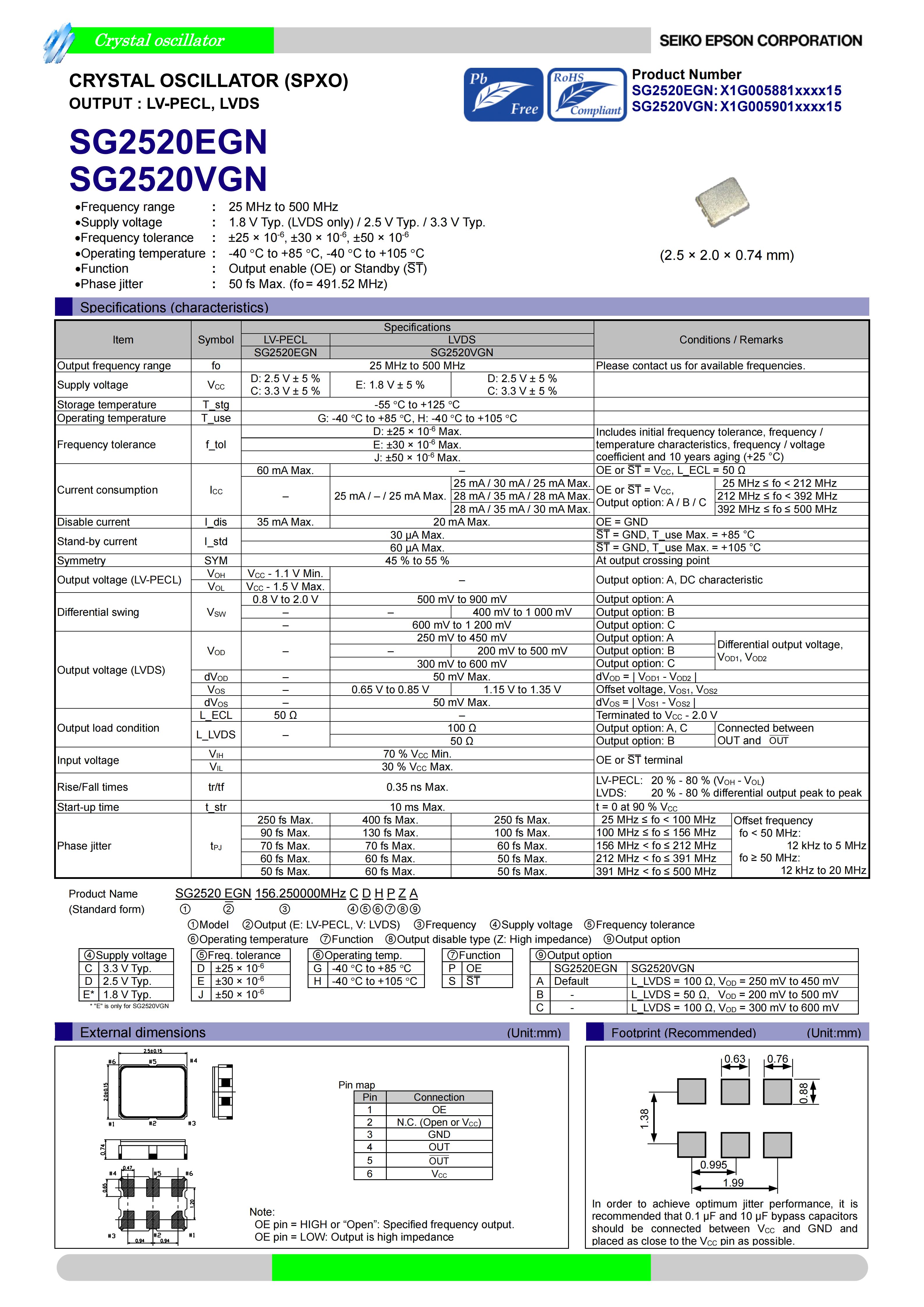 SG2520VGN 156.25MHz EJGPZASG2520VGN156.25MHzLVDS1.71 to 1.89V-40°C ~ 85°C50PPM