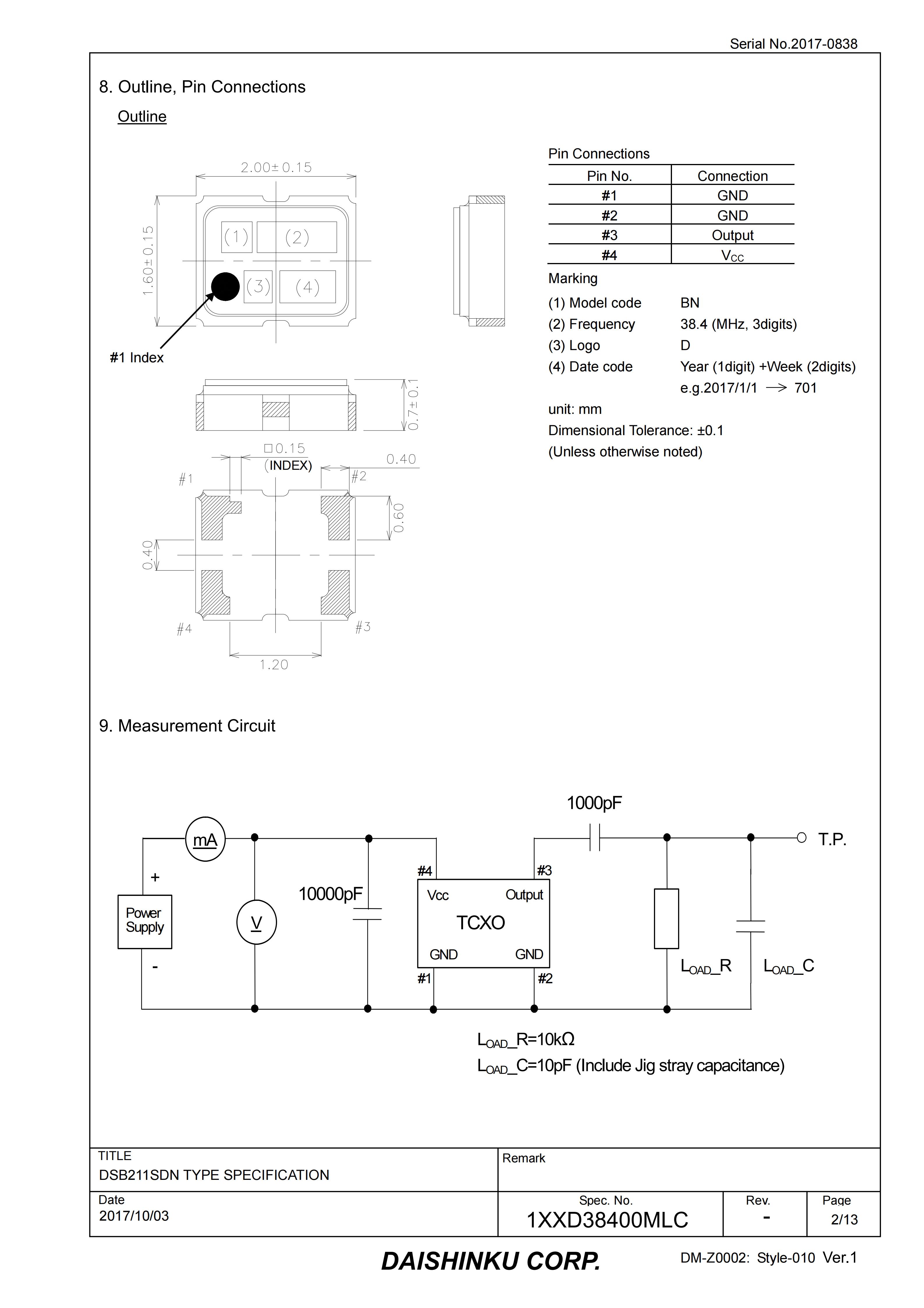| 料号 | 1XXD38400MLC |