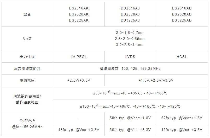 今后日本大真空KDS晶振公司不仅将在差分晶振领域而且将在所有有源OSC晶振领域推出的Arkh.2G系列产品并致力于实现全自动生产同时我们将努力扩充产品阵容以满足各种市场需求,另外DS2016AD DS2016AJ DS2016AK(尺寸2.0×1.6×0.7mm) DS2520AD DS2520AJ DS2520AK(2.5×2.0×0.85mm) DS3225AD DS3225AJ DS3225AK(3.2×2.5×1.1mm)日本大真空株式会社这几款差分晶振常用频率100MHz,125MHz,156.25MHzMHz,这几款差分晶振常用于AI服务器,光收发器,车载以太网,光传输设备,5G基站等,另外这几款差分晶振支持HCSL,LVDS,LV-PECL这三种差分信号,低相位抖动:典型值36fs @156.25MHz,LVDS,低相位噪声:f0=156.25MHz,Vcc=3.3V,LVDS。