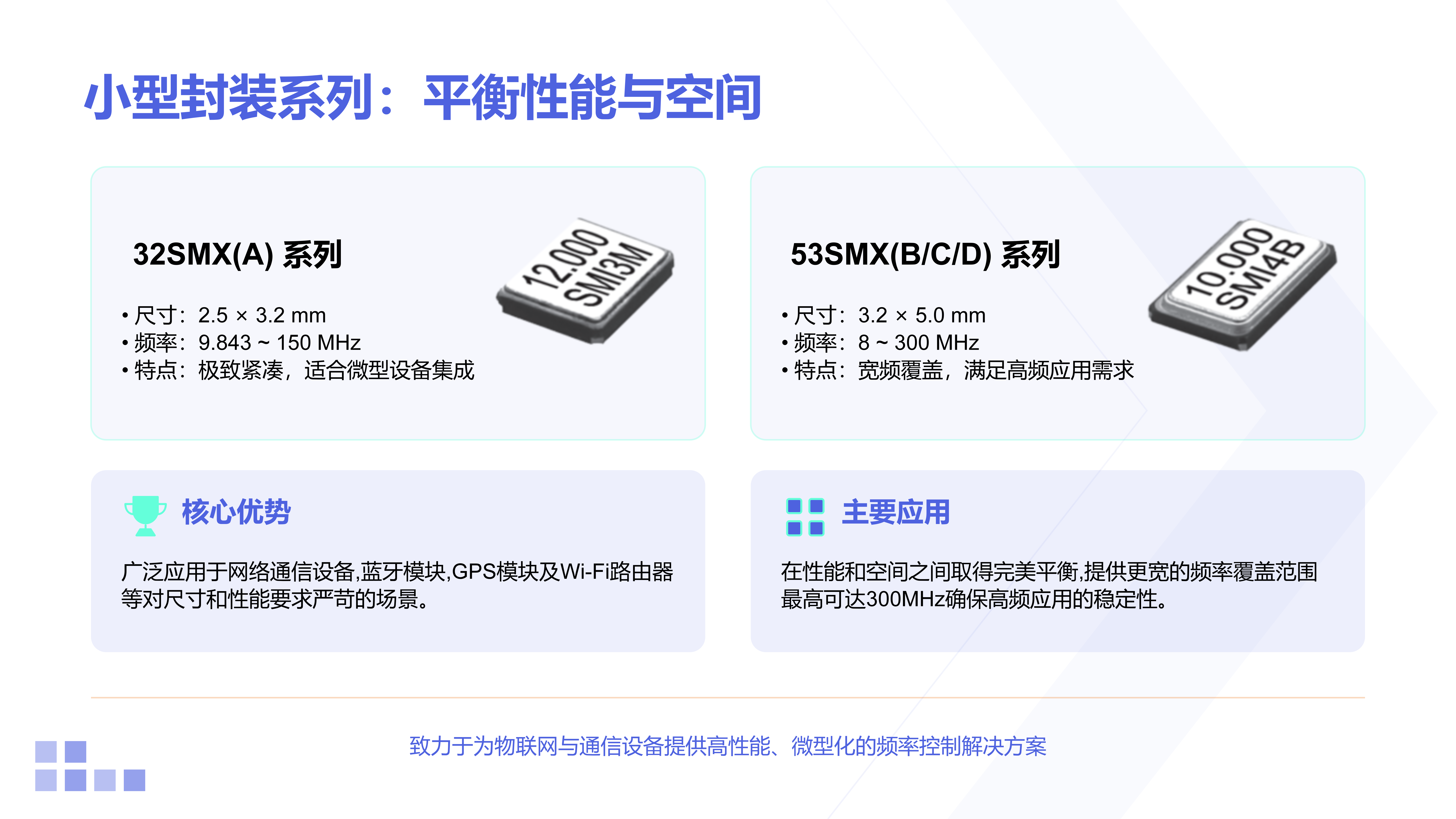 | SXO-4053CS |  | 3.2x5.0x1.5 | CLIPPED SINE | 13~52 | ±0.5~±2.5 | +1.8~+3.3 | -30~+75℃(Standard) -30~+85℃(Standard) -40~+85℃(Option) | n.a. |