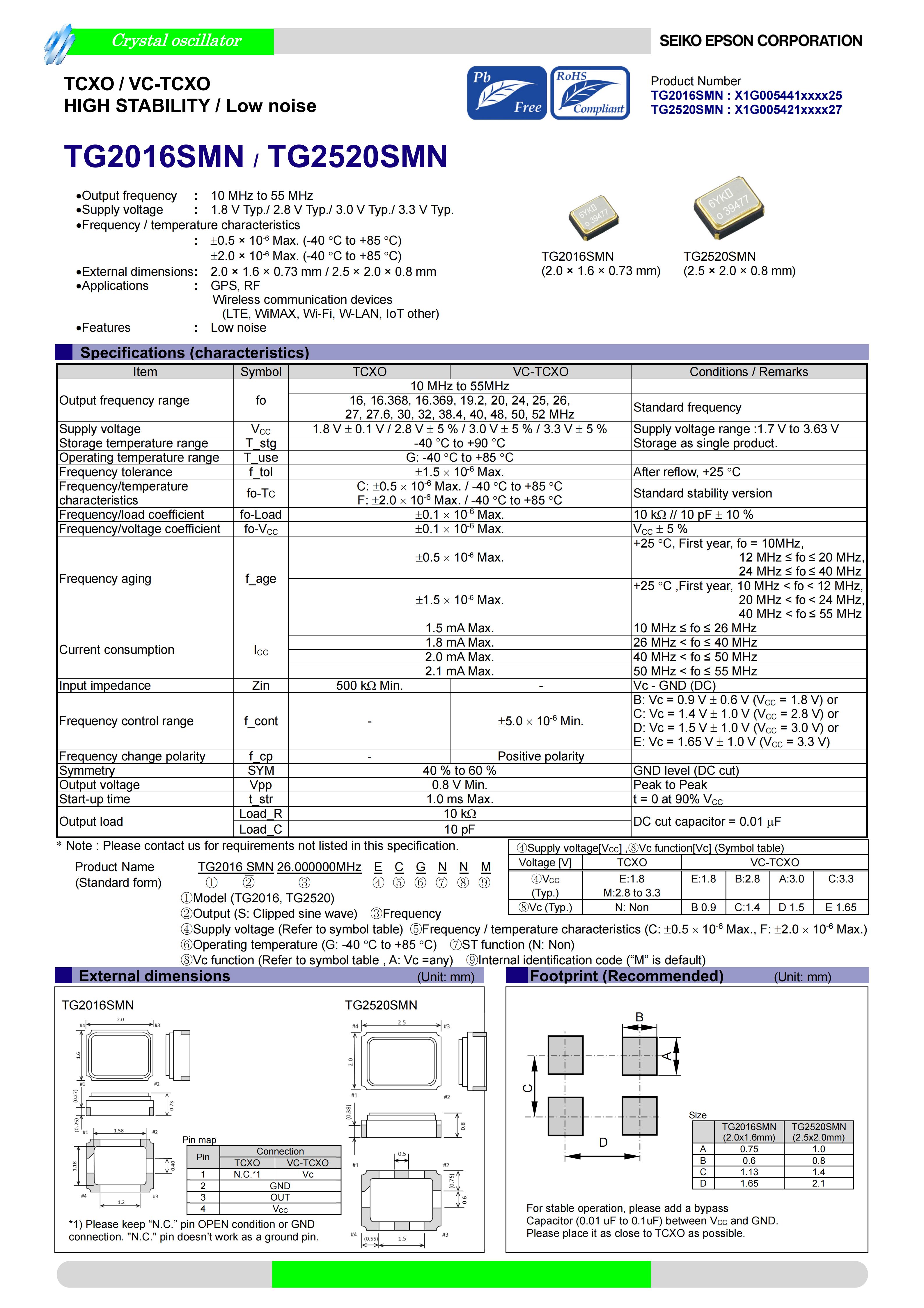 TG2016SMN 52.0000M-ECGNNM12TG2016SMN52MHz1.7V ~ 3.63V±500ppb-40°C ~ 85°C