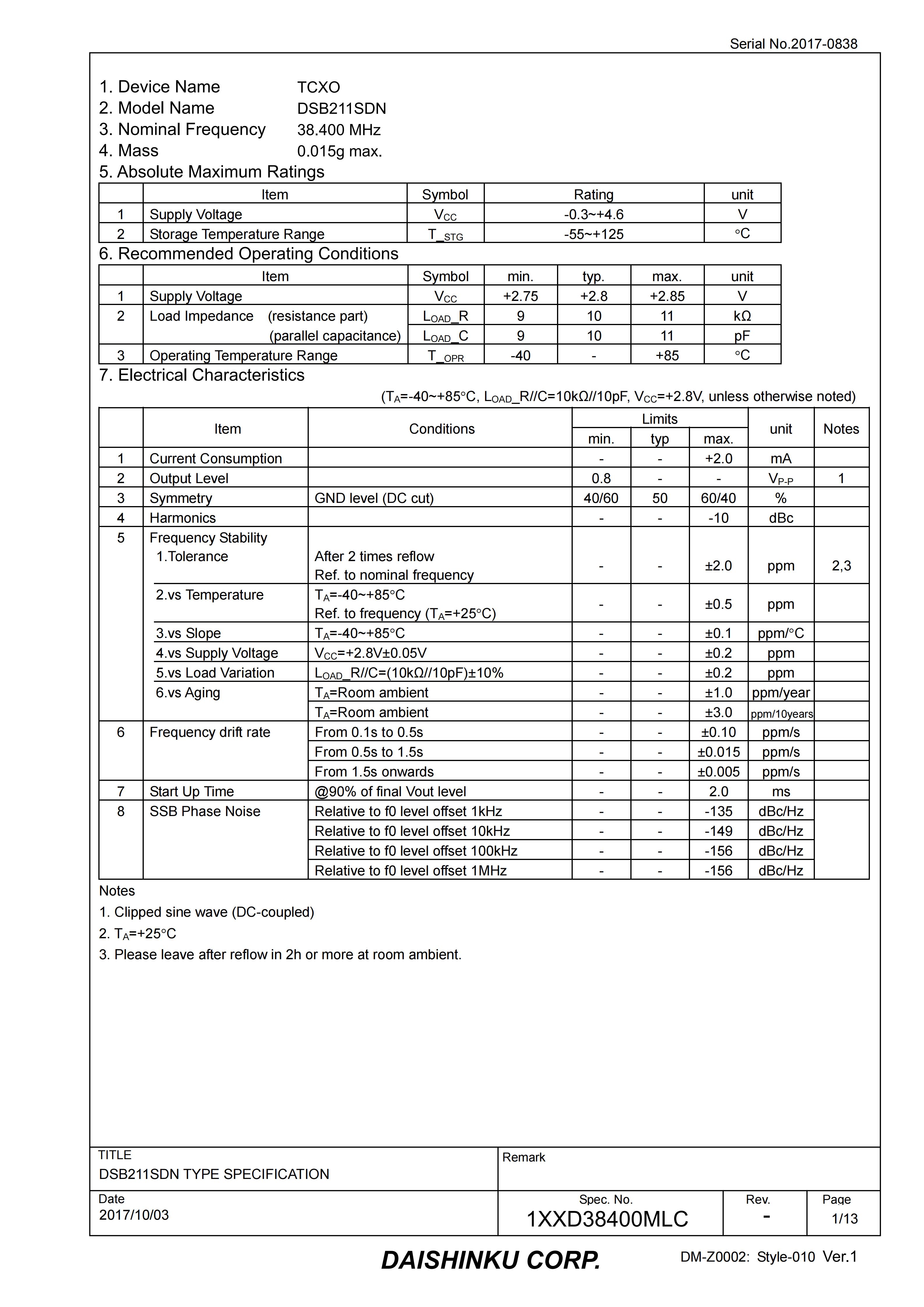 1XXD38400MLC是日本KDS晶振公司的一款温补晶振主要性能特点如下: