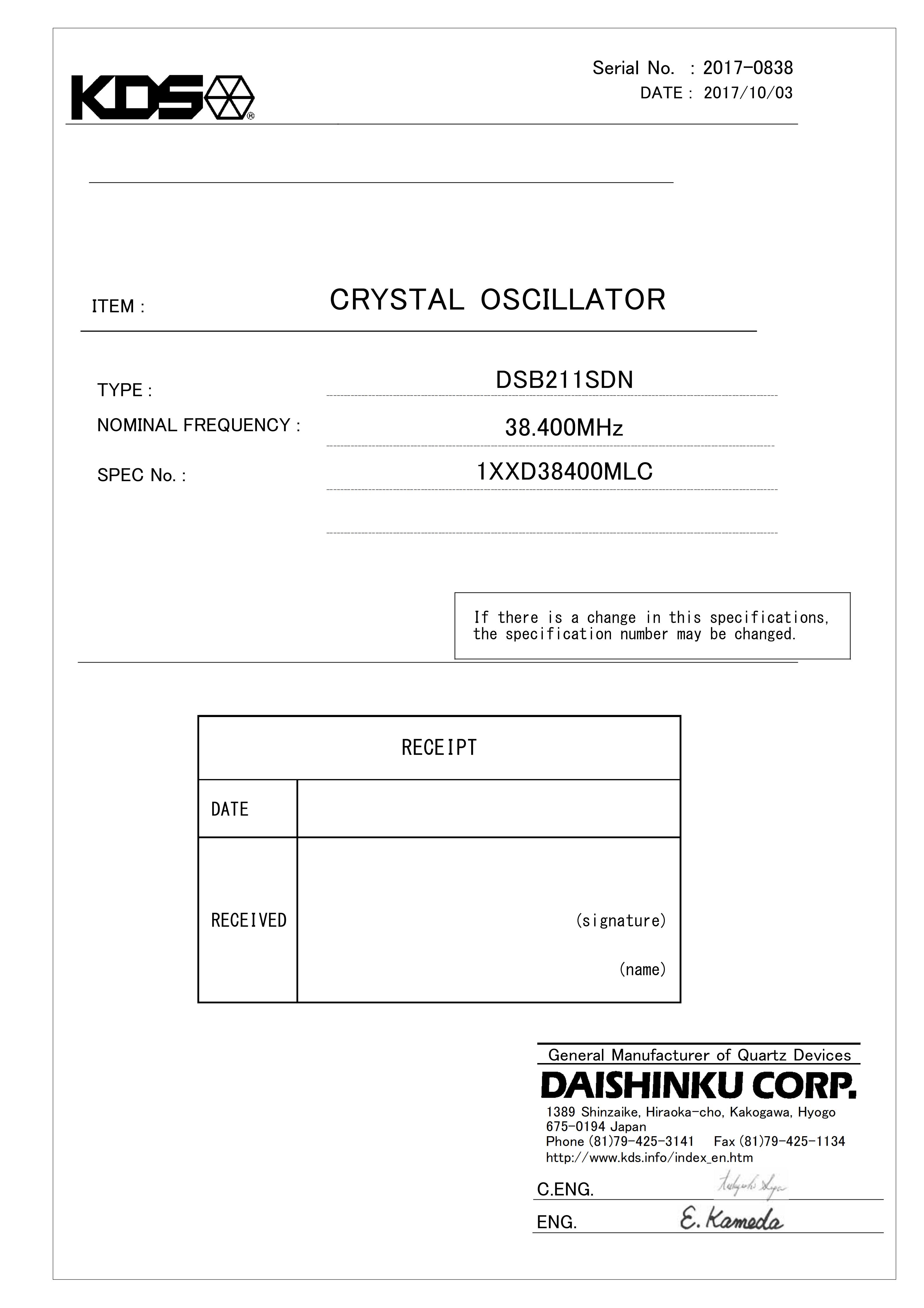 | 料号 | 1XXD38400MLC |