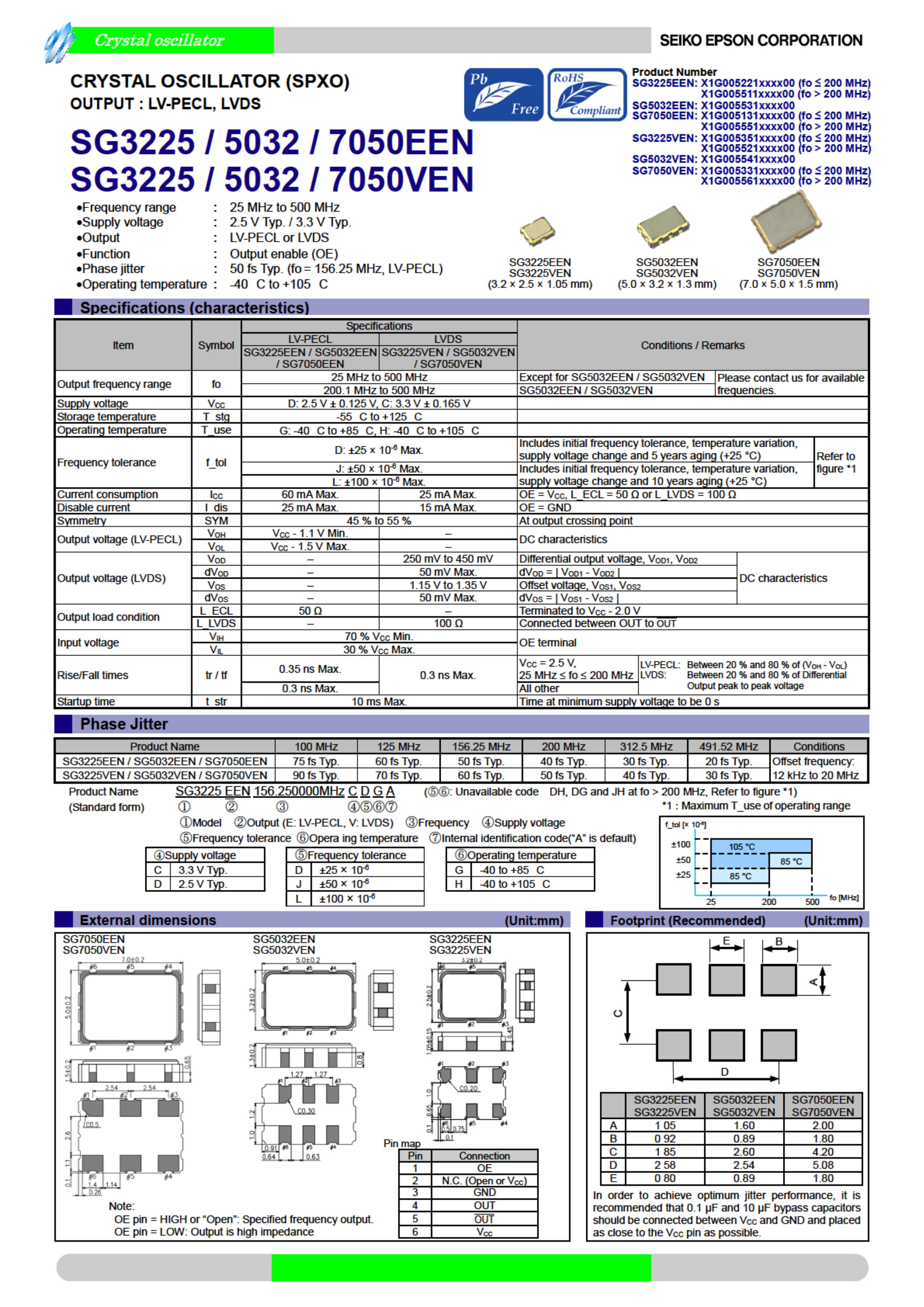 | SG3225VEN 50.000000M-CJGA6 | SG3225VEN | 50MHz | LVDS | 3.3V | -40°C ~ 85°C | 50PPM |