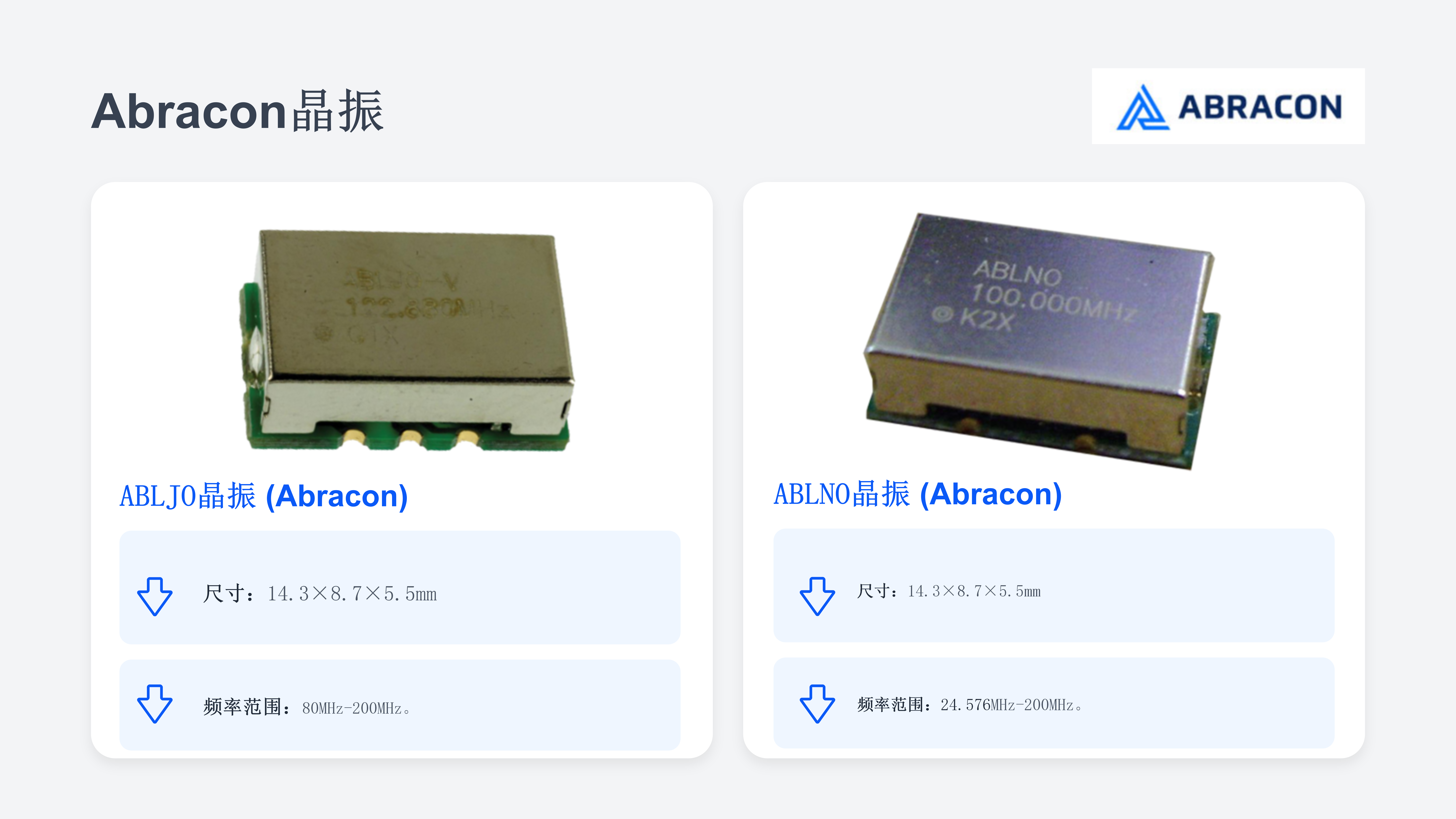 当全球时频器件市场正迎来新一轮增长周期,据行业报告显示,通信网络是晶振最大的应用领域,预计2026年电信行业将占据30.42%的市场份额,5G独立组网架构将同步精度要求推至1.5微秒以内,TCXO和OCXO已成为无线接入网的标配组件,与此同时AI数据中心的爆发式增长也在推动超低抖动晶振需求的急剧攀升,NDK晶振,京瓷晶振,Abracon晶振公司等行业头部厂商已相继推出30fs甚至15fs级别的超低抖动产,艾博康Abracon晶振公司推出的ABLJO与ABLNO两款有源晶振产品精准回应,ABLJO以0.10ps最大抖动和-158dBc/Hz@1MHz的相位噪声,完美匹配5G基站射频前端,AI服务器高速互连,光模块时钟参考等对时序精度要求严苛的场景,而ABLNO则以-162dBc/Hz @10kHz的极致相位噪声和30fs的超低抖动,面向卫星通信,高端测试仪器,航空电子等对信号纯净度有极致要求的领域,值得注意的是,两款产品均采用3.3V,LVCMOS输出,在功耗控制上也表现出色ABLJO晶振在150MHz~200MHz高频段最大电流仅40mA,而ABLNO晶振在100MHz~150MHz频段典型电流为35mA,在实现高性能的同时兼顾了能效。